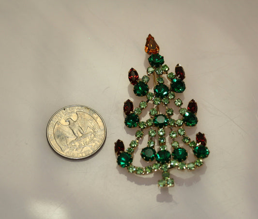 Multi Color Rhinestone Christmas Tree Brooch Pin, Christmas Jewelry, Holiday Jewelry Gift