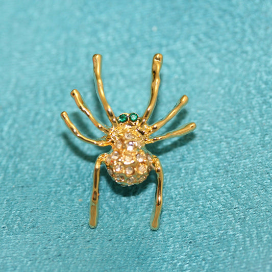 Halloween Spider tack pin , Rhinestones pave and gold tone insect Brooch Pin