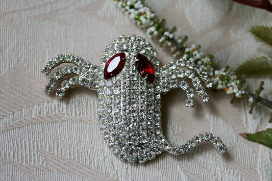Vintage Jewelry Adorable Rhinestone Spooky Flying Ghost Halloween Pin Brooch