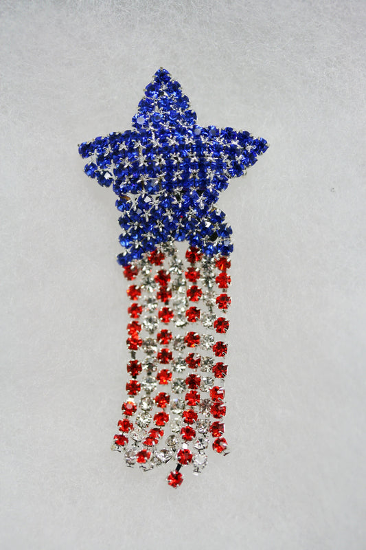 Crystal Shooting Star Brooch Red White Blue Rhinestone Shooting Star Pin USA Patriotic 4th of July Independence Day Gift,