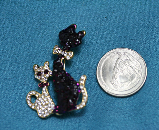 Vintage Purple Crystal Diamond Amethyst Rhinestone cat Pin Brooch Cats Ladies Pins