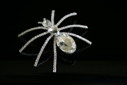 Silver Tone Clear Rhinestone 3D Halloween Spider Pin Brooch, Large Spider Pin