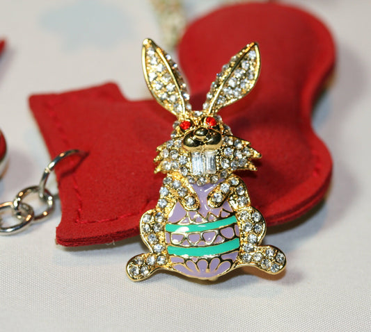Golden Easter Bunny Crystal Brooch Pin Easter Bunny holds Easter Egg Brooch Rhinestone Bunny Pin