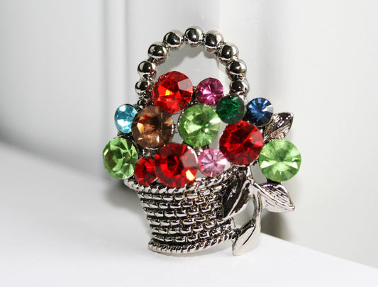 Colorful Crystal Rhinestone Gem Easter Fruit Flower Goodies Basket Pin Brooch Easter Basket Brooch