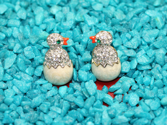 Rhinestone Happy Easter Hatching Egg Chick Duck Post Earring Crystal Easter Earrings