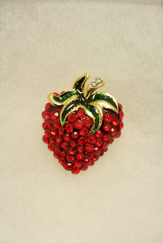 Rhinestone Strawberry Fruit Pin Brooch & Earrings Set, Red Ruby Crystal Strawberry Jewelry Set, Strawberry Festival Gift