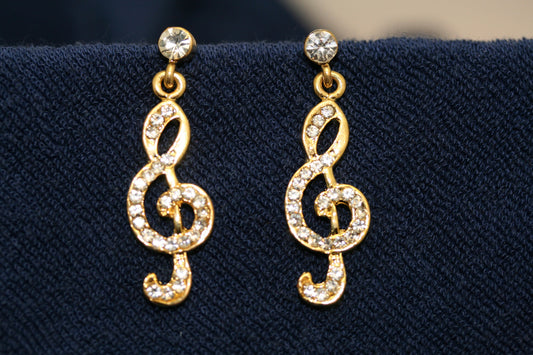 Rhinestone Music Note Brooch/pin With Matching Post Dangle Earring, Gold Music Note Jewelry Set