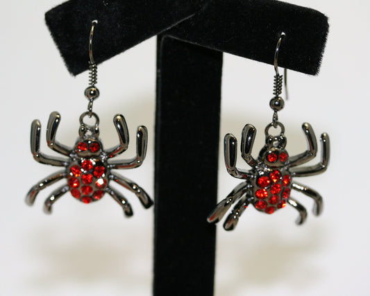 Rhinestone Red Spider Dangle French Drop Earrings Insect Animal Halloween Jewelry Gift