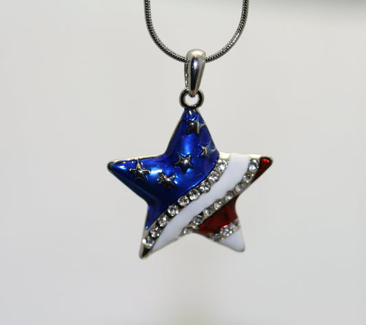 Rhinestone USA Flag Stars Pendant Patriotic Heart Pendant Necklace & Post Heart Earrings Set, Crystal Star Pendant, Star Earrings