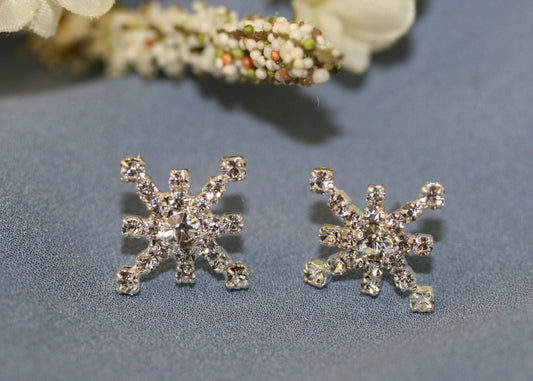 Rhinestone Snowflake Post Stud Earring, Crystal Christmas Holiday Jewelry, Winter Snowflake Earring