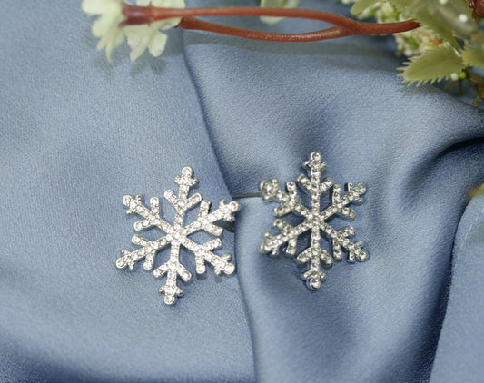Rhinestone Silver-tone Christmas snowflake Stud earring woman metal CZ crystal, Holiday Fashion Jewelry Gift
