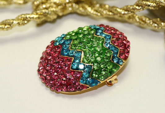 Rhinestone Multi-Colors Easter Egg Brooch Pin and Post Earrings Set, Easter Holiday Costume Jewelry