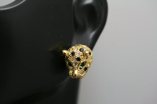 Rhinestone Leopard Slim Bracelet, Leopard Earrings Post, Black Enamel Clear Crystal Leopard Slim Bracelet for Women, Leopard Jewelry