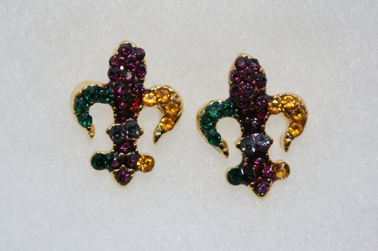 Rhinestone Mardi Gras French Fleur De Lis Flower Floral Pin Brooch Pendant & Earring Set, Fleur De Lis Earrings Bride Jewelry Gift for Her