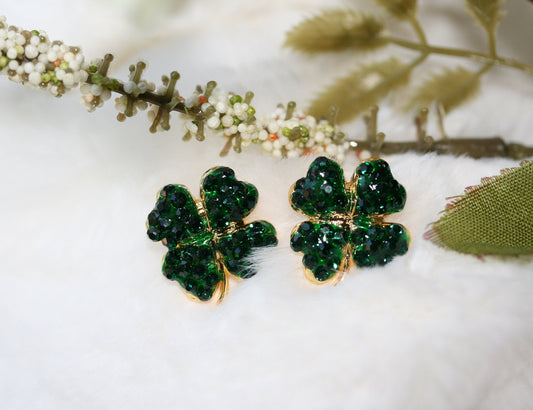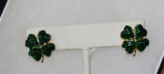Rhinestone Green Shamrock Post Earrings , Emerald colored 4 Leaf Clover Earrings , Irish Jewelry, St Patrick's Earrings