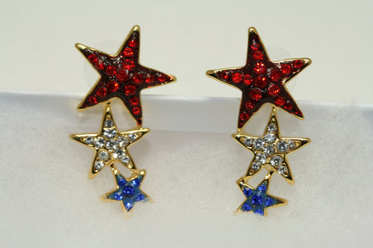 USA Patriotic 4th of July Independence Day Gift, Red White Blue Rhinestone Shooting Star Post Earrings
