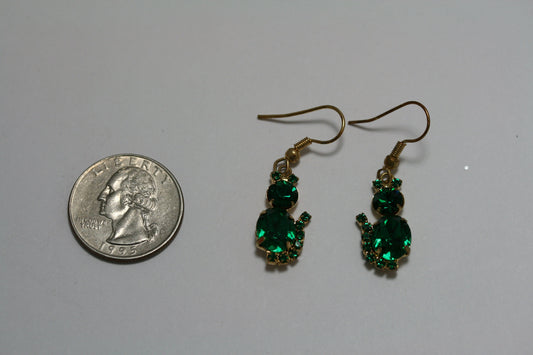 Vintage Green Rhinestone Cat Dangle Earring, Crystal Cat Earrings, Halloween Earrings