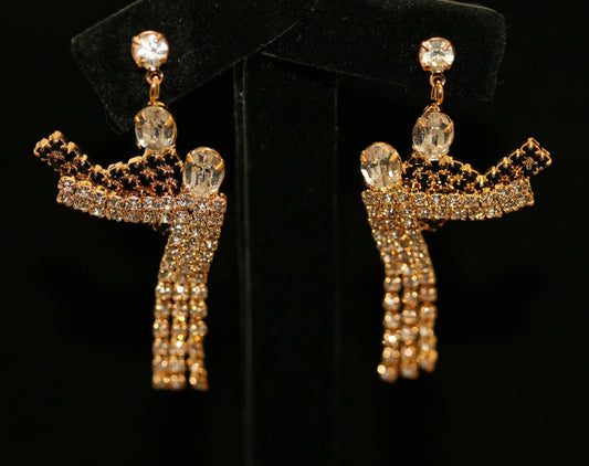 Vintage Art Deco Earrings couple dancing black and white rhinestone Jewelry