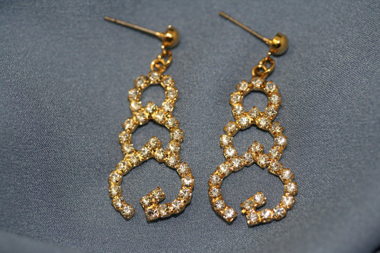 Vintage Rhinestone Snowman Dangle Earrings, Outline Shape, Holiday Fashion Jewelry Gift