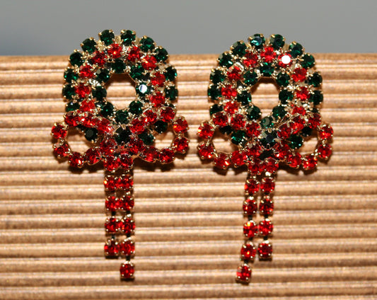 Vintage Red Green Rhinestone Christmas Wreath Stud Earrings for Women, Holiday Fashion Xmas Jewelry Gift