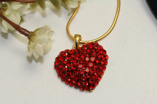 Valentine's Day Pendant Pin & Earrings Set, Red Ruby Rhinestone Valentine's Heart Necklace Charm, Wedding Jewelry Gift,