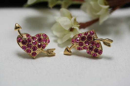 Rhinestone Valentine's Heart Post Earring, Heart Earrings, Heart With Gold Arrow Earrings, Valentine's Day Love Jewelry