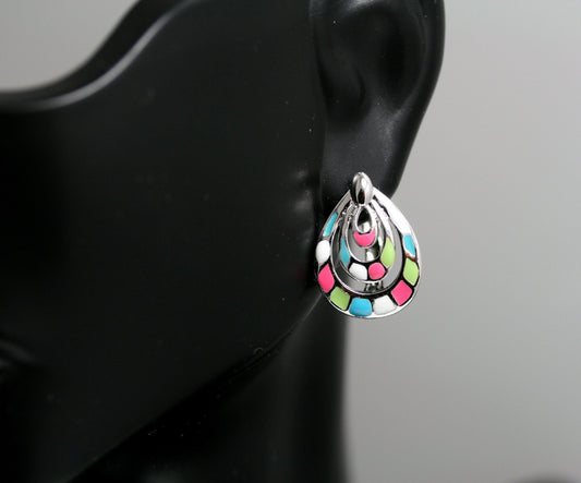 Silver-tone Enamel Teardrop Clip On Earrings | THE COLORS COLLECTION