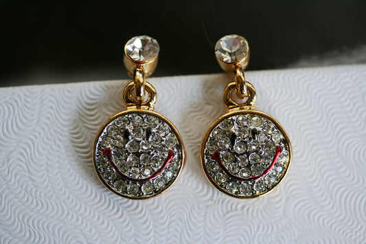 Smiley Face Emoji Rhinestone Drop Earring Smiley Face Emoji Rhinestone Tac Pin