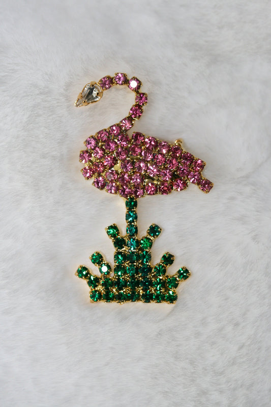 Vintage Rhinestone Flamingos Topical Pink Green Brooch Pin, Flamingo Earrings, Pink Flamingo Brooch