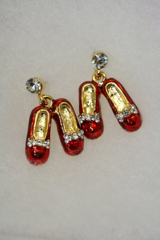 Ruby Red Slippers Lapel Pin Brooch Red Slippers Post Earrings, Red Enamel Slippers Jewelry Set
