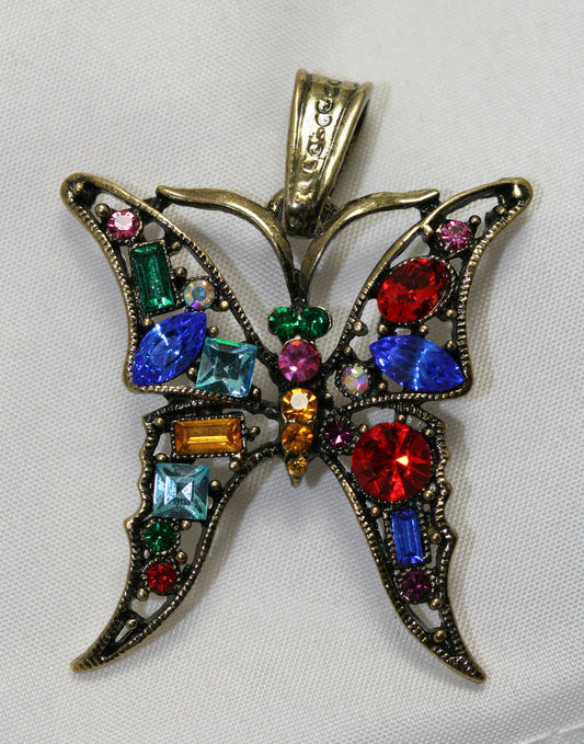 Vintage Gold Multi Color Rhinestone Butterfly Pendant Necklace