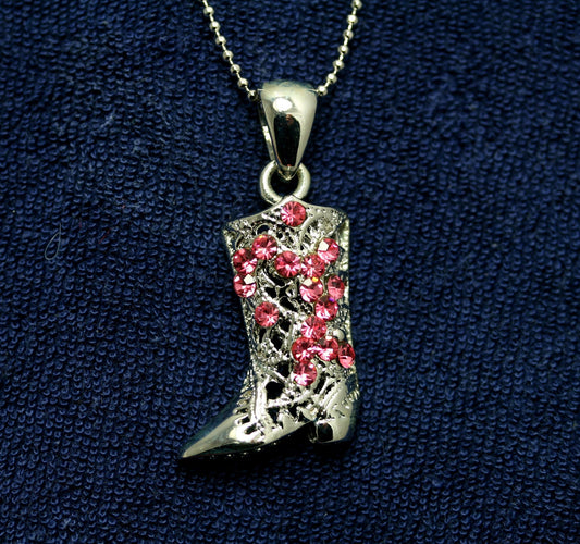 Rhinestone Western Texas Cowboy Cowgirl Boots Necklace, High Heels Shoes Jewelry Pendant, Crystal Boots Gift For Her