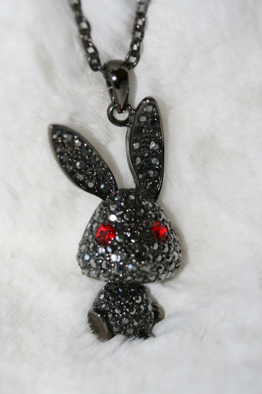 Silvery Tone Crystal Rhinestone Bobble Anime Bunny Rabbit Pendant Necklace