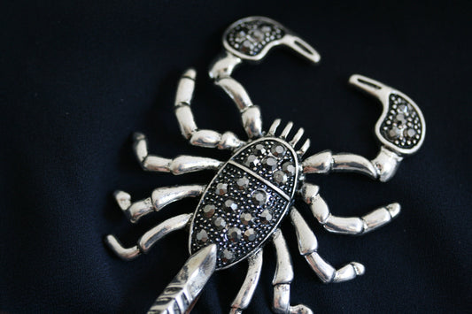 Scorpion Necklace Pendant Black Pave Sparkling Realistic Scorpion Scorpio Zodiac Silver Charm Bead Pendant Halloween Costume Jewelry Gift