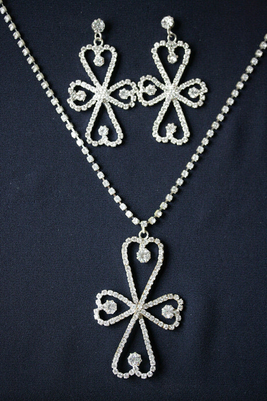 Silver Plated Rhinestone Etched Cross Pendant & Chain Necklace, Cross Pendant, Crystal Cross Jewelry Gift