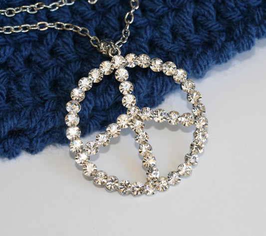 Silver and Pave Diamond Peace Sign Pendant Necklace for Women